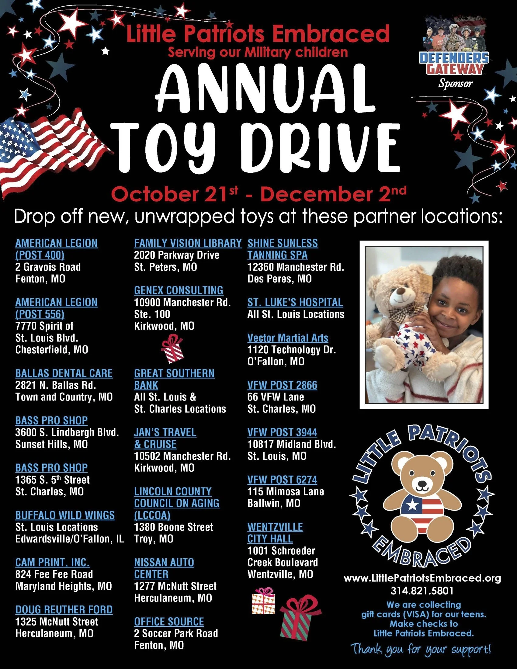The Little Patriots Embraced Annual Toy Drive is back again in 2019!
